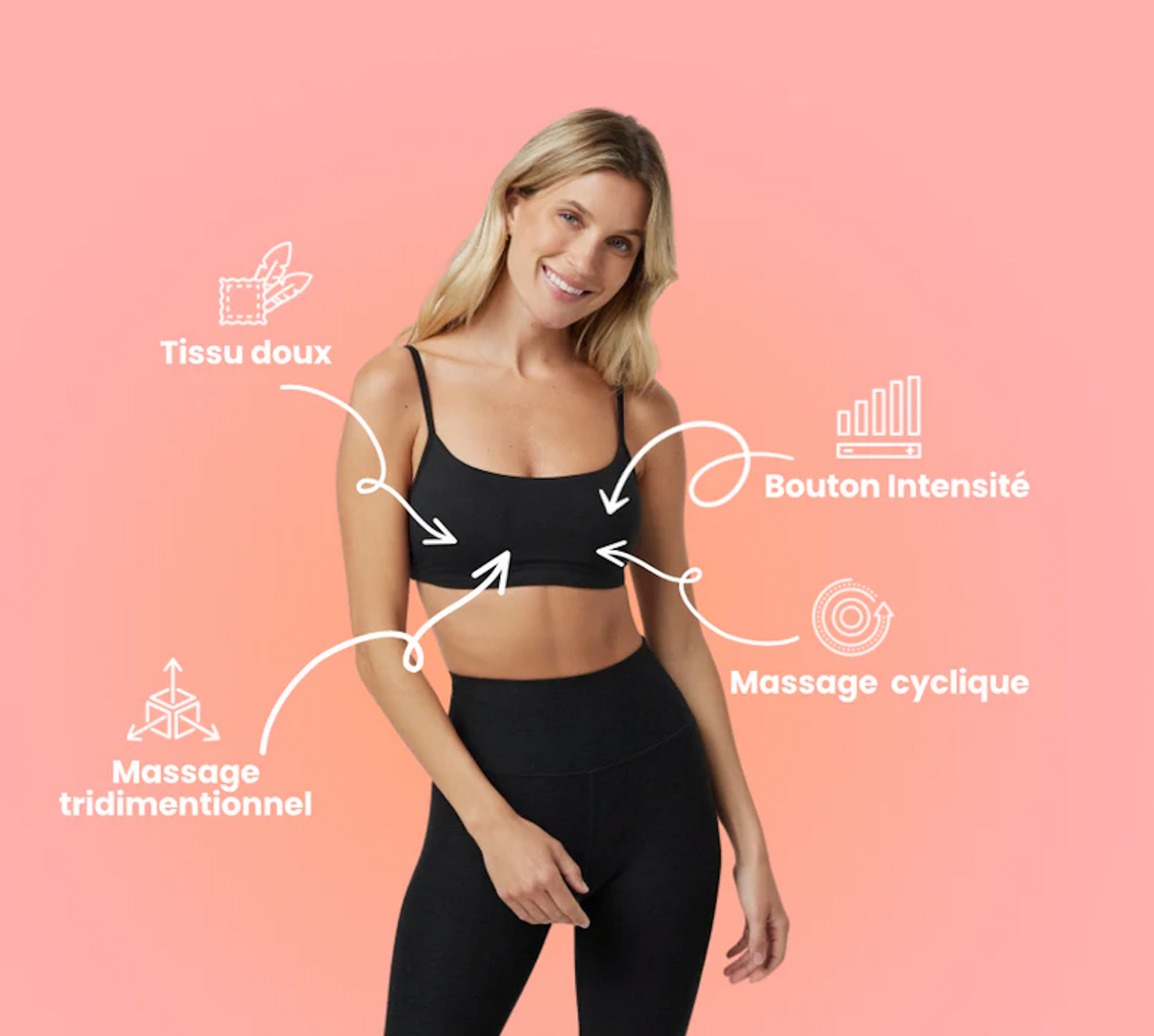 La brassière est conçue pour le confort : tissu doux, réglage de température, massage discret. Elle ne serre pas, ne gratte pas, et la chaleur est douce et agréable. On l’oublie rapidement une fois portée.