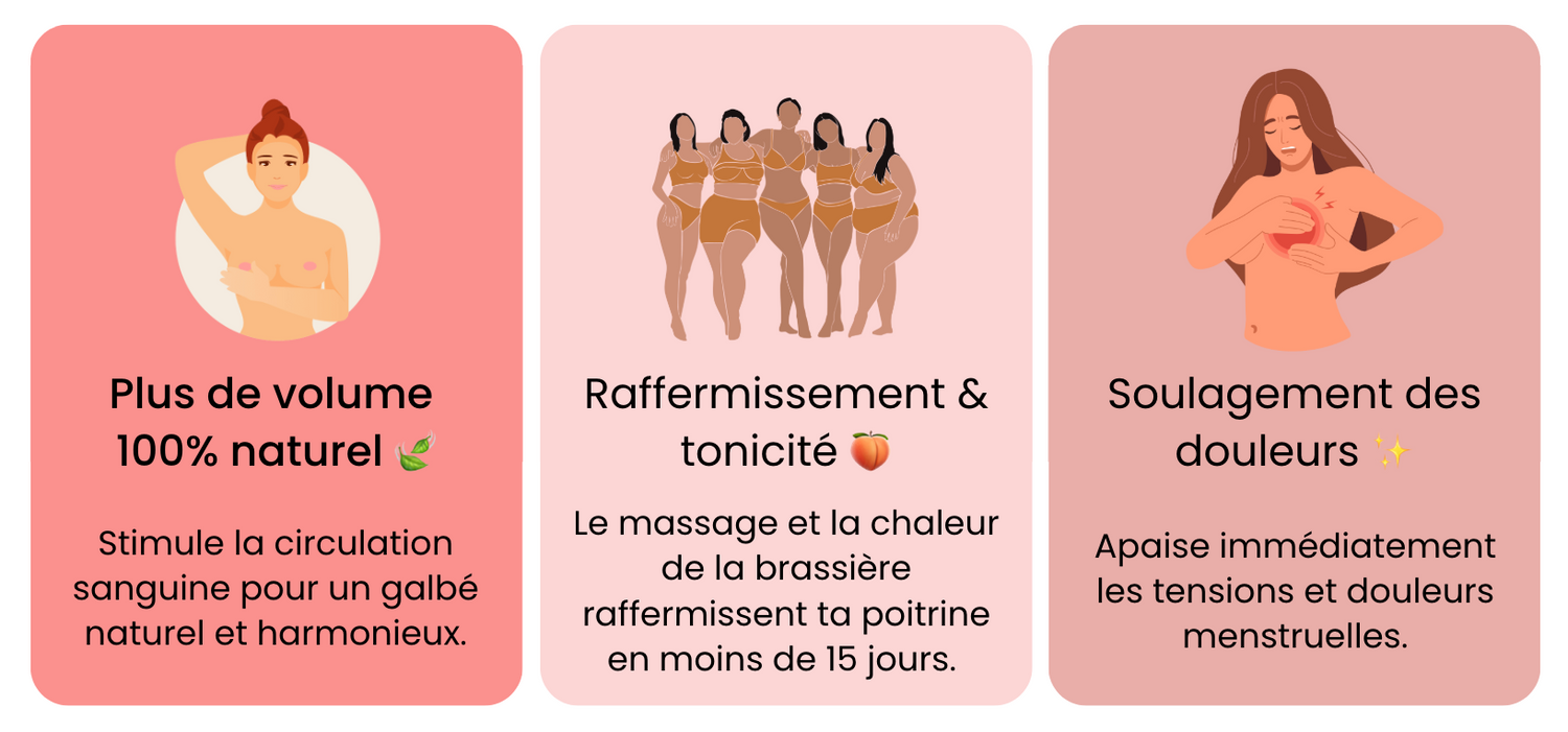 Oui, mais naturellement. Elle ne "gonfle" pas artificiellement. Le massage ciblé et la chaleur stimulent la circulation sanguine et tonifient les tissus mammaires, ce qui peut améliorer le volume, la fermeté et la forme de la poitrine avec une utilisation régulière.